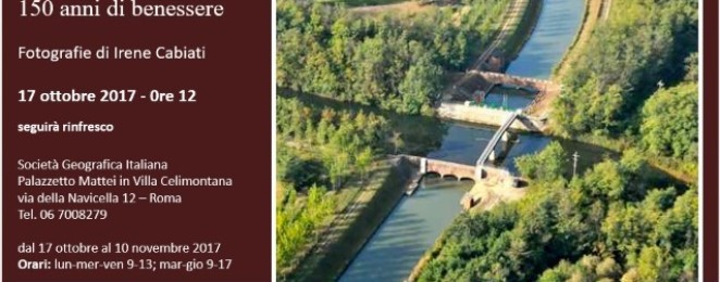 Dal 17 ottobre al 10 novembre, presso la Società Geografica Italiana, gli scatti della giornalista de La Stampa Irene Cabiati raccontano il Canale Cavour: la prima grande infrastruttura dell’Italia unita, realizzata in poco meno di tre anni grazie al duro lavoro di oltre 14.000 uomini. Un’opera che ha dato identità e ricchezza ad un territorio, quello compreso tra le provincie di Vercelli, Novara e Pavia e che oggi, da solo e grazie alle acque del Canale Cavour produce oltre l’80% del riso italiano. La mostra sarà inaugurata martedì 17 ottobre alle ore 12.