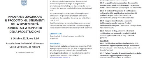 L’Ing. Stefano Nerviani, Presidente Europrogetti, parteciperà in qualità di relatore al seminario tecnico “Innovare e qualificare il prodotto: Gli strumenti della sostenibilità ambientale a supporto della progettazione” in programma il 1 ottobre 2013 alle 9.30 presso l’Associazione Industriali di Novara.