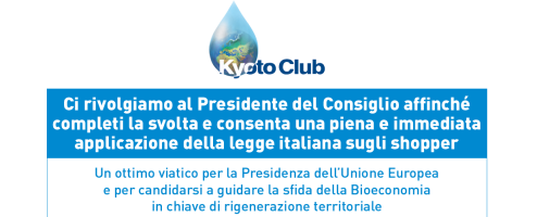 Europrogetti aderisce al manifesto del Kyoto Club sui bioshopper per la piena e completa sostenibilità ambientale dei nostri modelli di vita e per la chiusura di un’era: quella dei sacchetti in plastica usa e getta. L’appello chiede al Presidente del Consiglio di dare piena attuazione al divieto di commercializzazione degli shopper monouso che non siano biodegradabili e compostabili conformemente allo standard europeo EN 13432! Per la sottoscrizione www.kyotoclub.org
